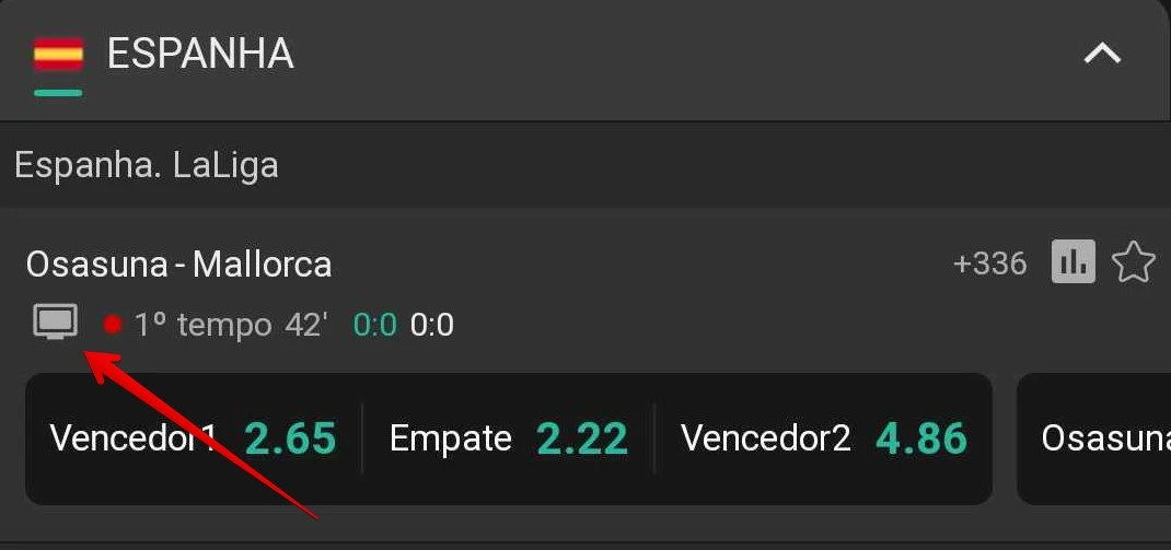 - No setor de esportes, escolha entre pré-partida ou jogos ao vivo