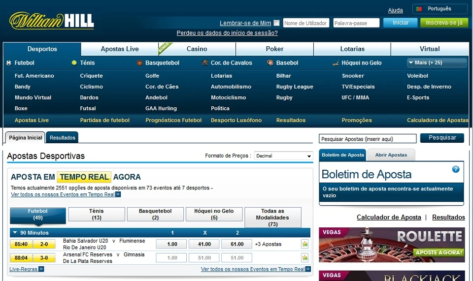 A casa deixou de aceitar jogadores brasileiros há alguns anos. Apesar de também não aceitar portugueses, o William Hill mantém sua página em português, o que nos dá esperança de que possa voltar ao país.