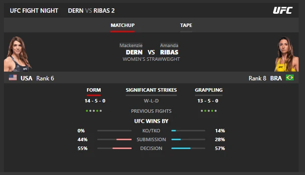 Este confronto marca o reencontro das lutadoras e também uma oportunidade para ambas se aproximarem do topo do ranking da categoria. Atualmente, Mackenzie Dern ocupa a sexta posição, enquanto Amanda Ribas é a oitava.